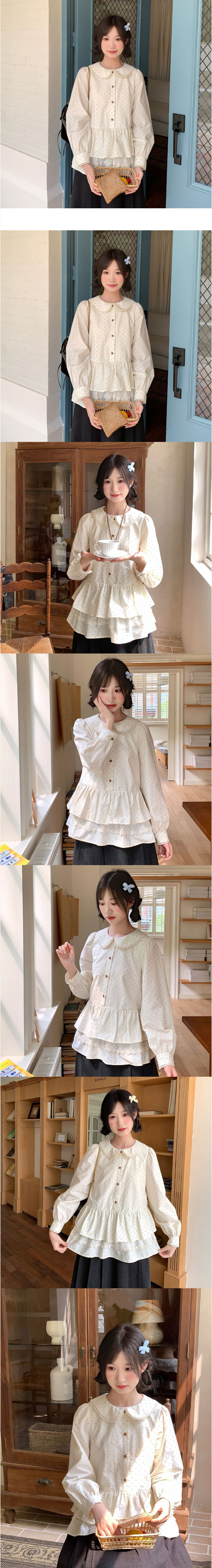 ALORA 甜美小點點拼接蕾絲襯衫,ALORA