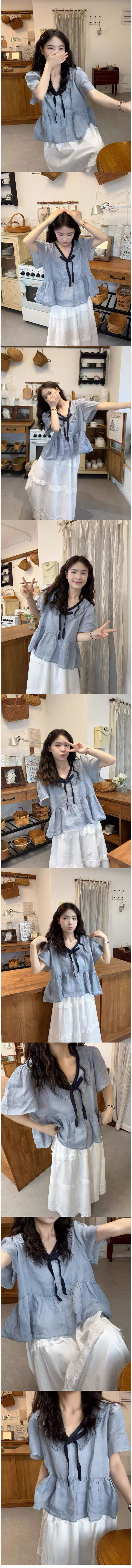 ALORA 蝴蝶結領帶棉麻上衣,ALORA