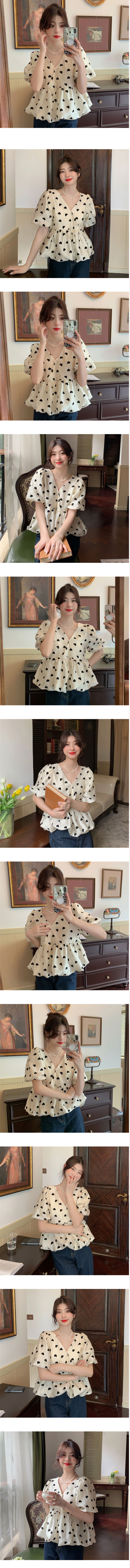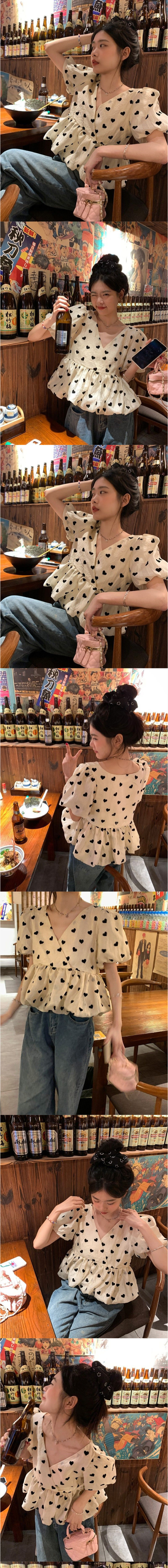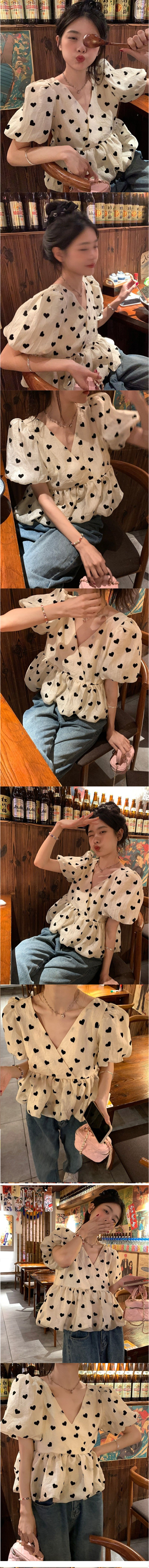 ALORA 滿版愛心V領泡泡袖上衣,ALORA