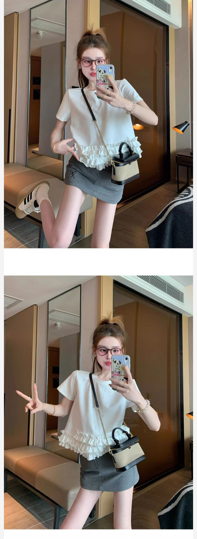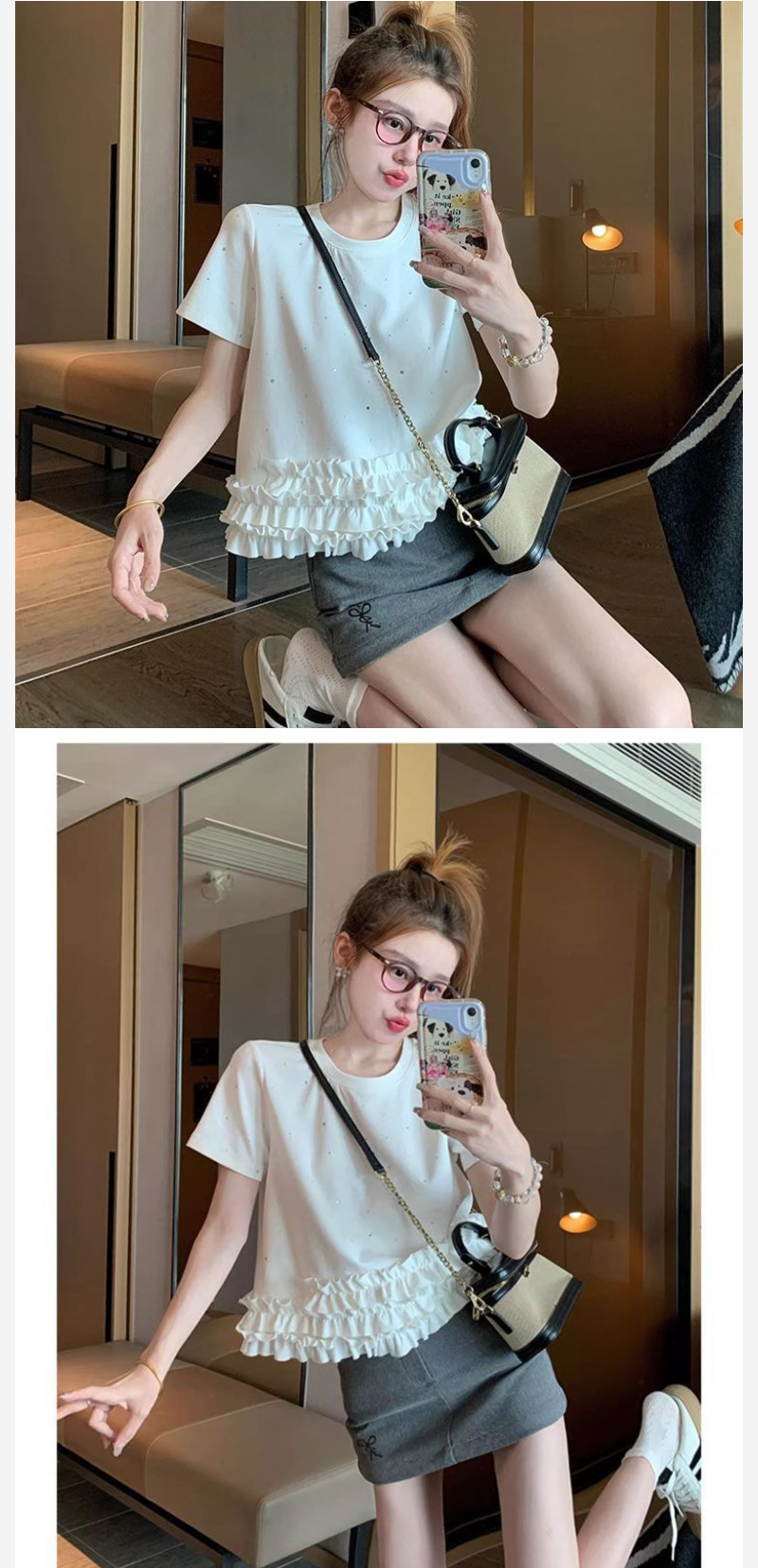 ALORA 滿滿貼鑽木耳邊短T,ALORA
