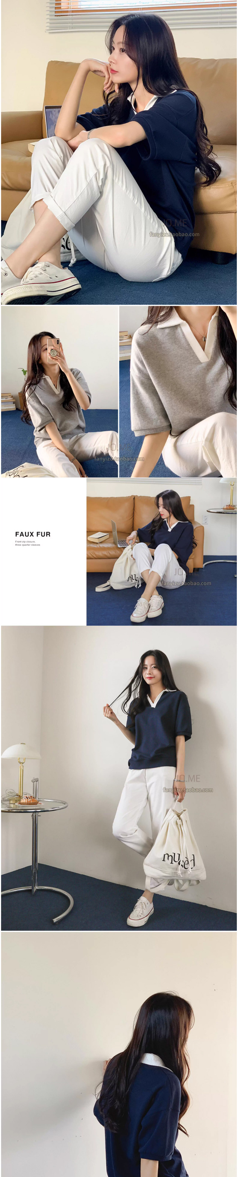 ALORA 歐膩質感撞色POLO領上衣,ALORA