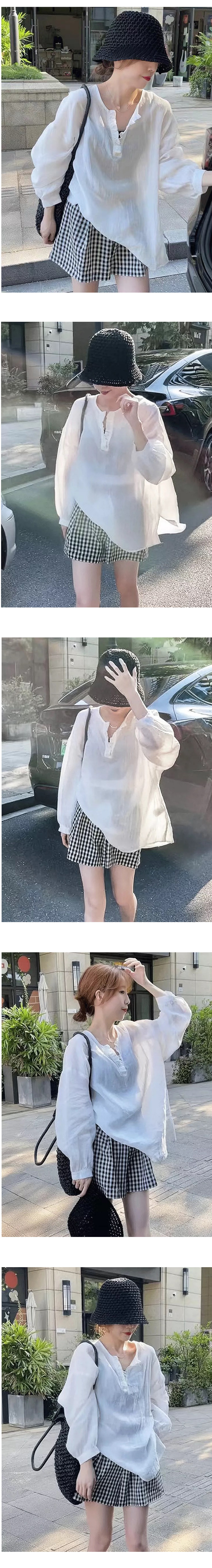 ALORA V領防曬黑白格兩件式套裝,ALORA