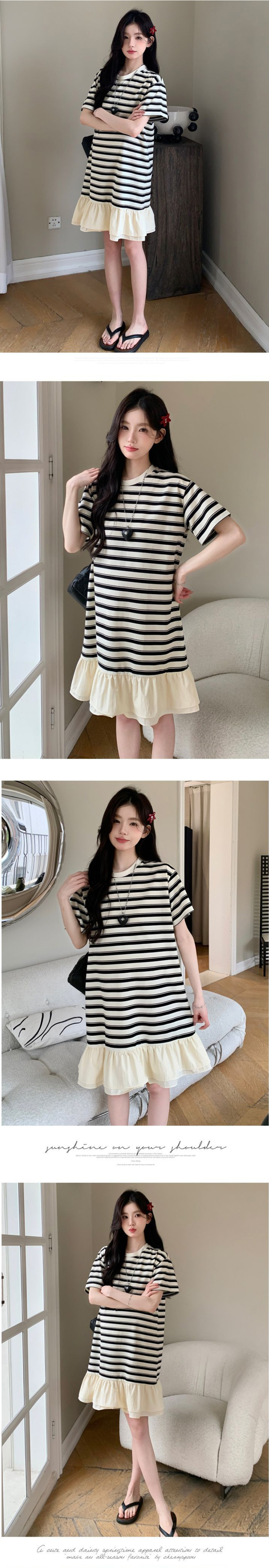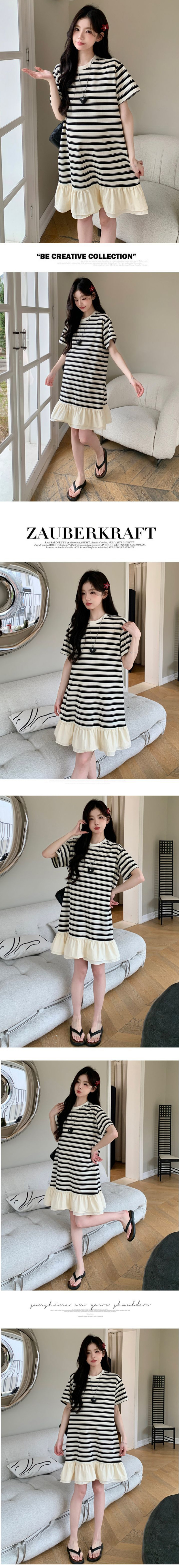 ALORA 橫條拼接荷葉魚尾洋裝,ALORA