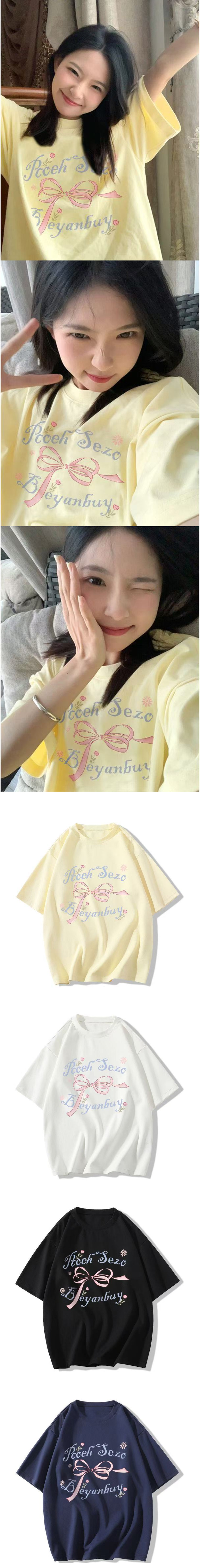 ALORA 漂亮蝴蝶結印花短T,ALORA