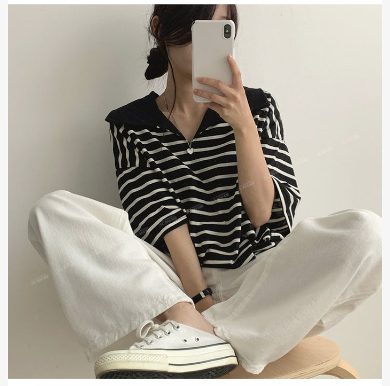 ALORA 翻領橫條紋短T