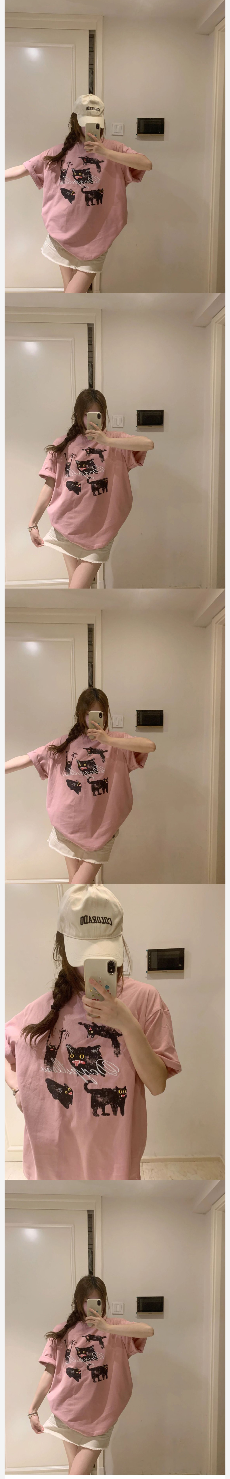 ALORA 可愛黑色貓咪印花短T,ALORA