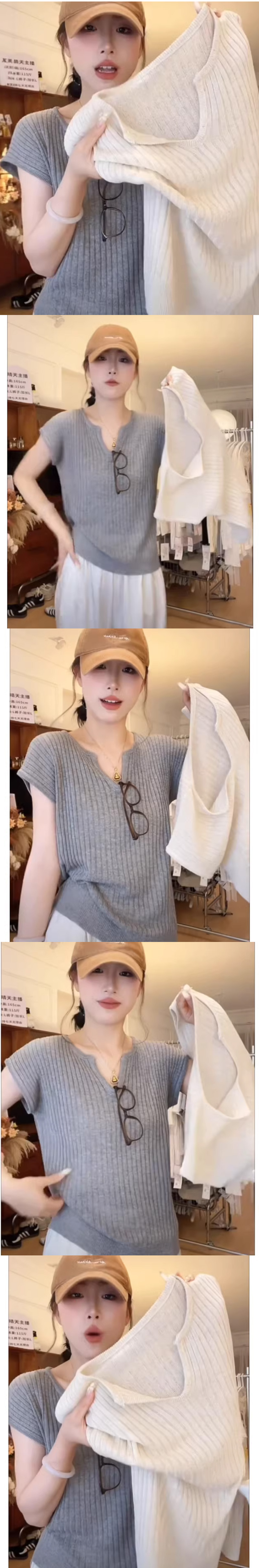 ALORA 別緻坑條V領針織上衣,ALORA