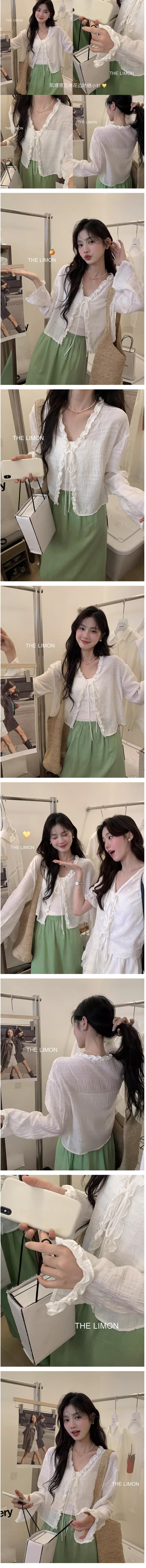 ALORA 荷葉紋理感綁帶罩衫外套,ALORA