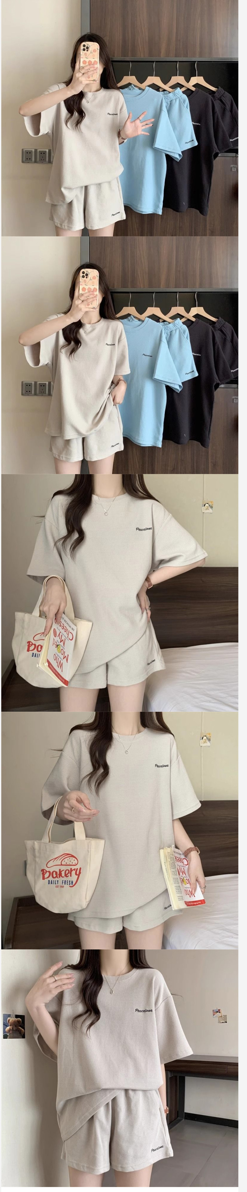 ALORA 小英文字華夫格兩件式套裝,ALORA