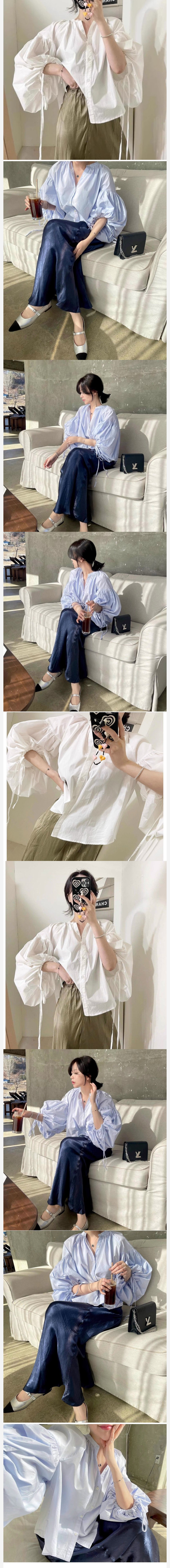 ALORA 可甜排釦泡泡袖襯衫上衣,ALORA