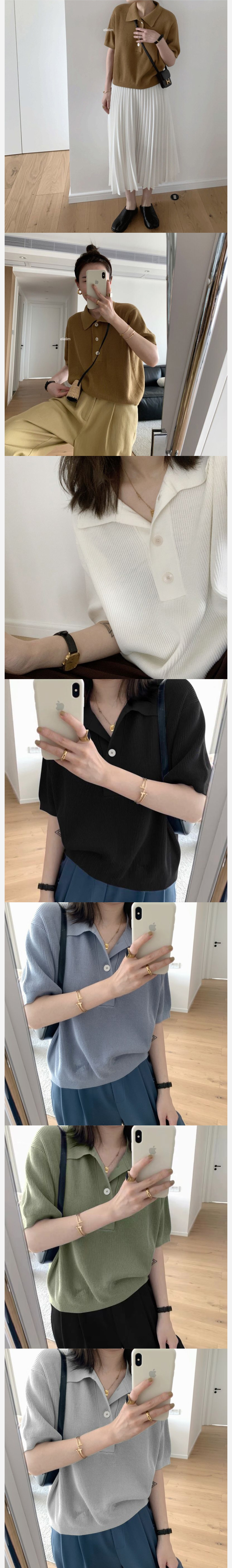 ALORA 坑條冰絲POLO領針織上衣,ALORA