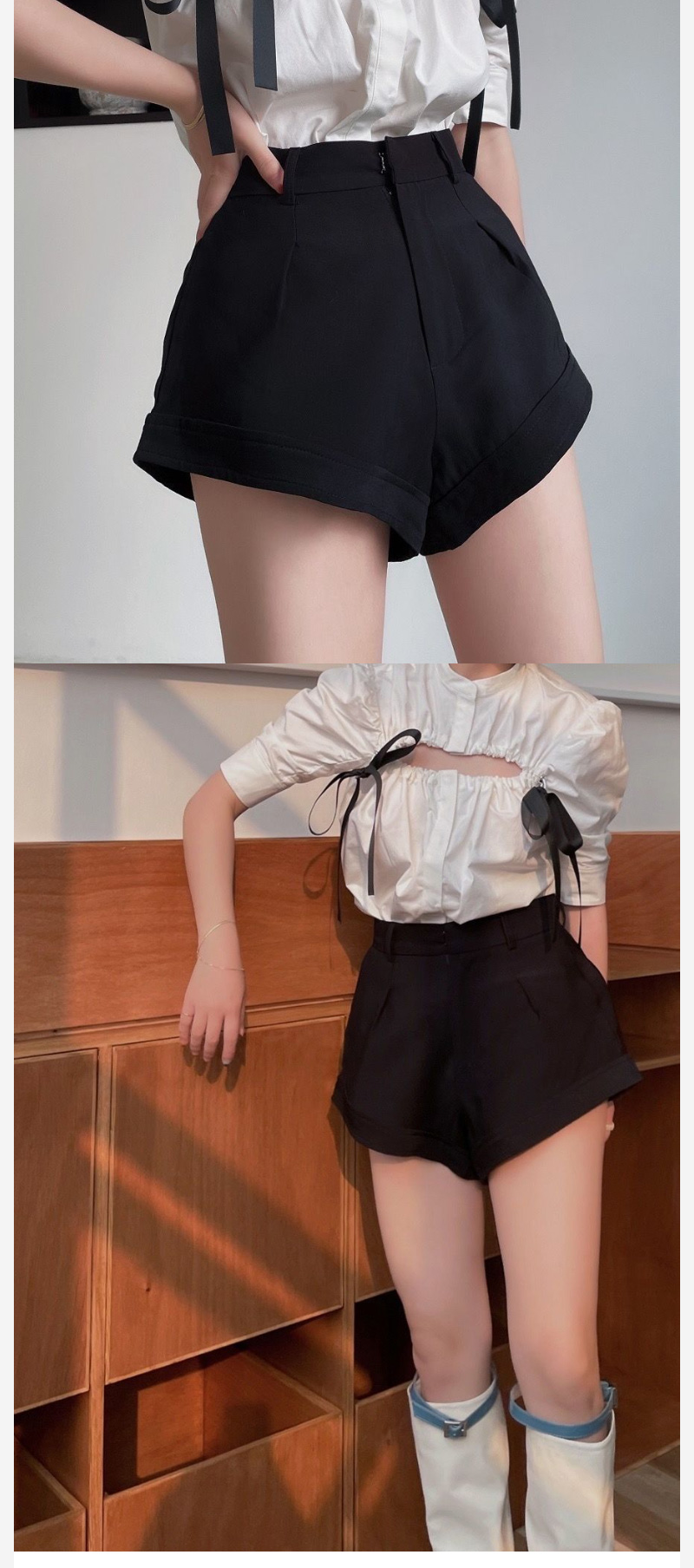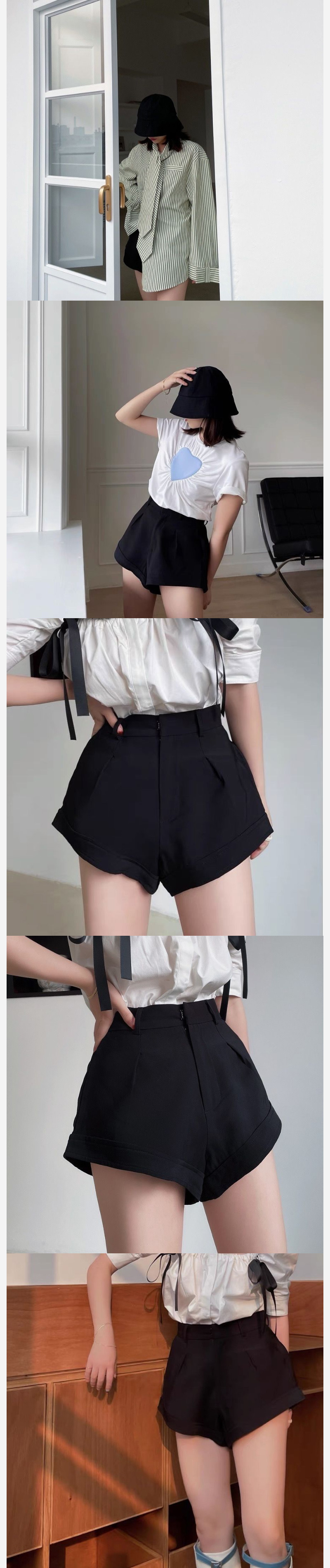 ALORA 顯瘦剪裁高腰黑休閒短褲