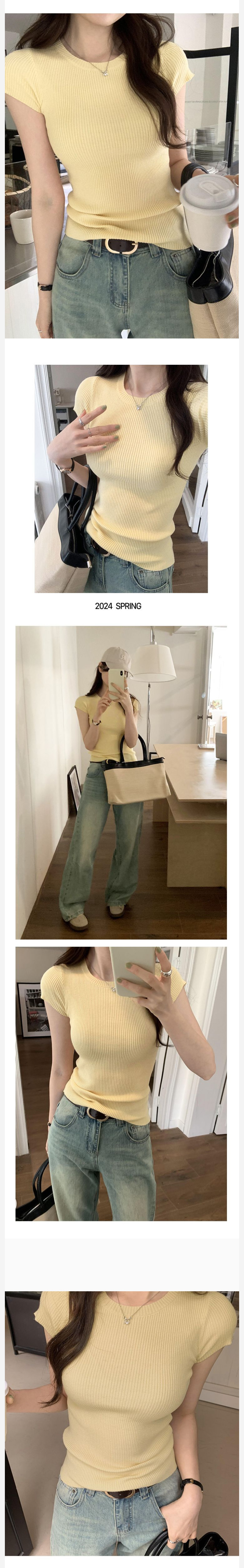 ALORA 春夏彈力圓領針織上衣,ALORA