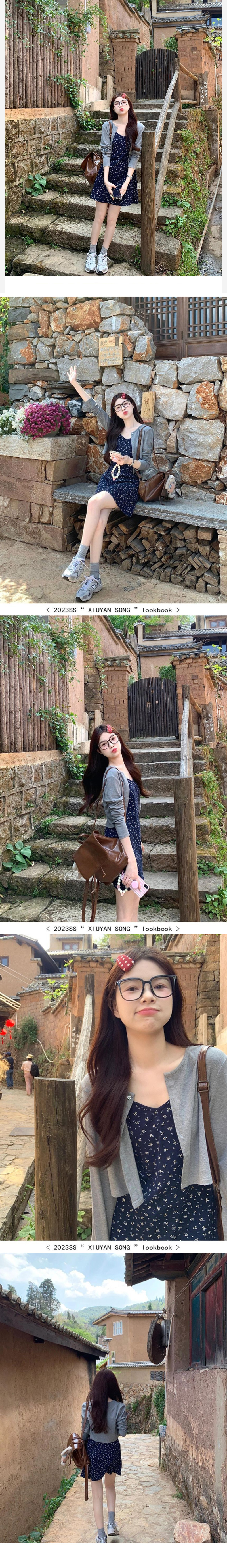 ALORA 深藍色碎花兩件式套裝,ALORA