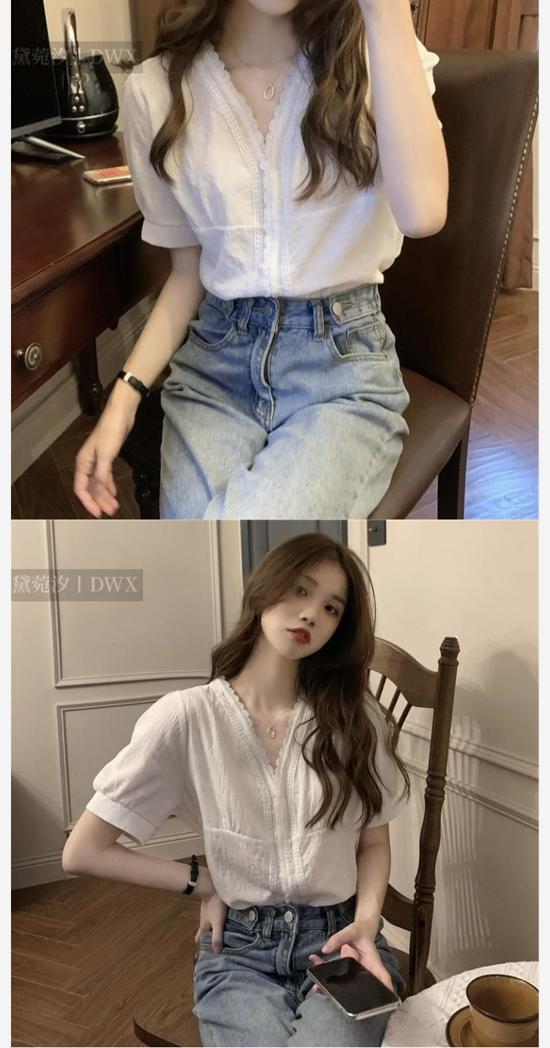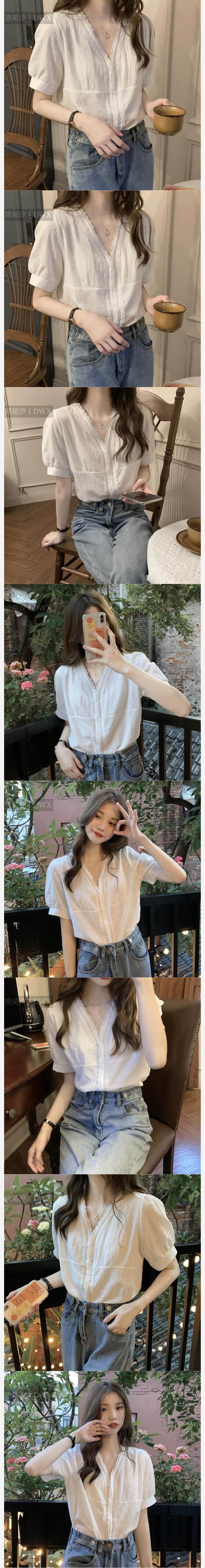 ALORA 可鹽V領蕾絲襯衫