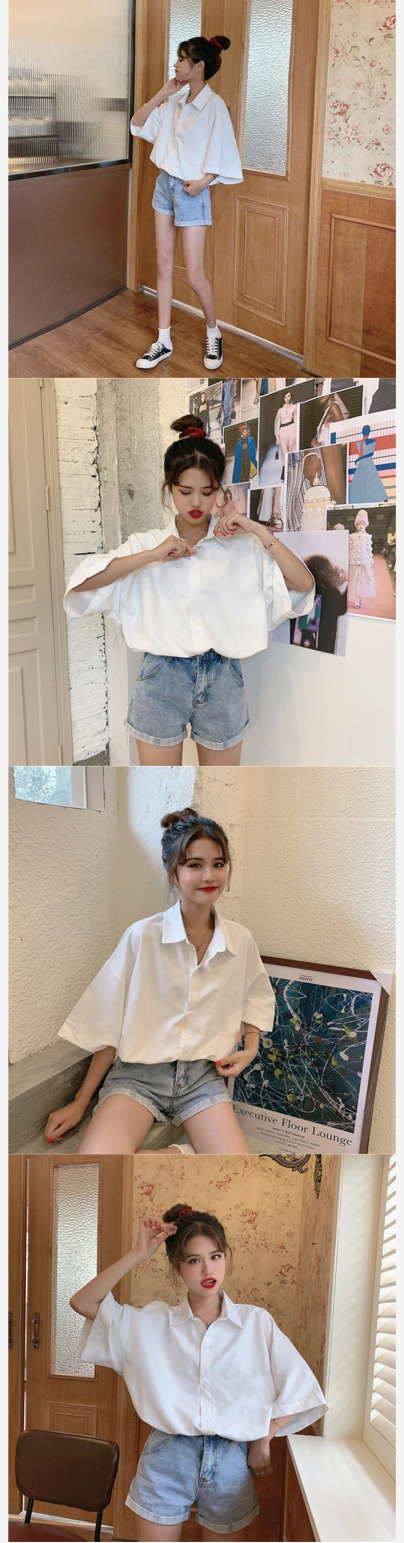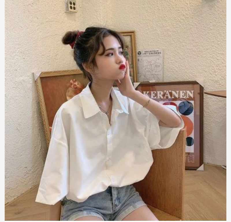 ALORA 寬鬆小白短袖襯衫