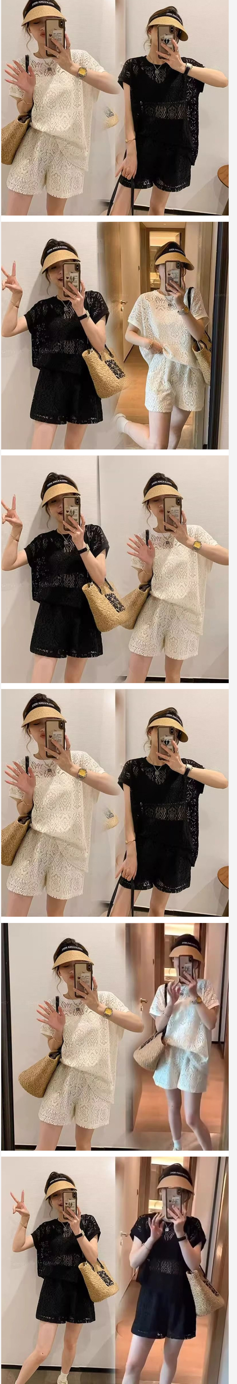ALORA 法式蕾絲簍空兩件式套裝,ALORA