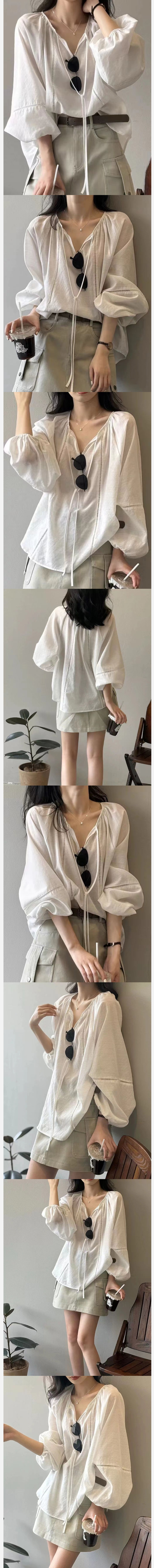 ALORA 袖口簍空棉麻上衣,ALORA