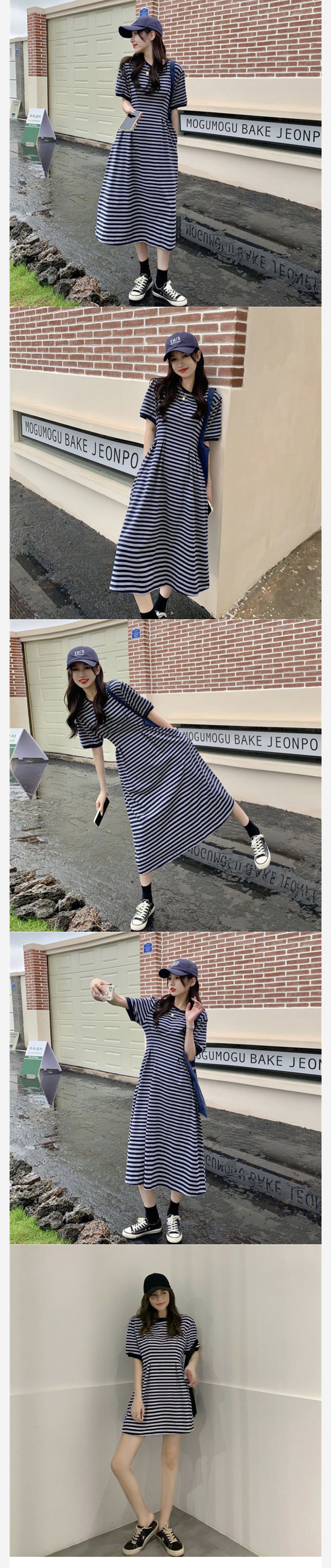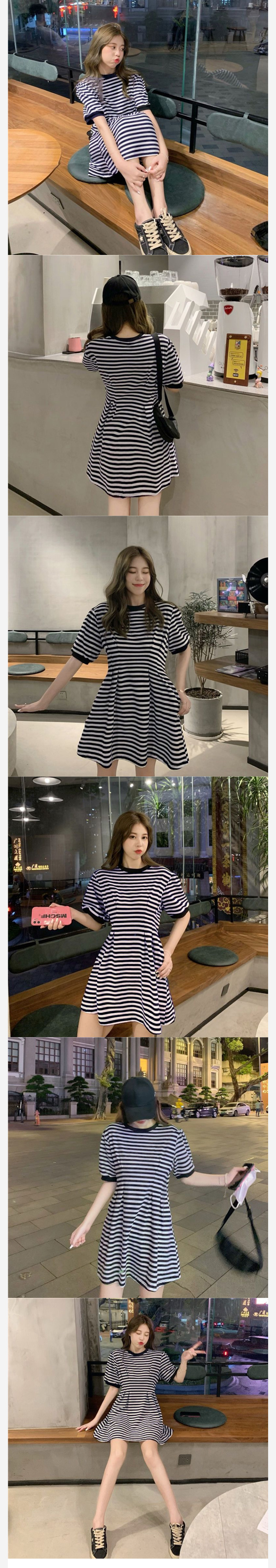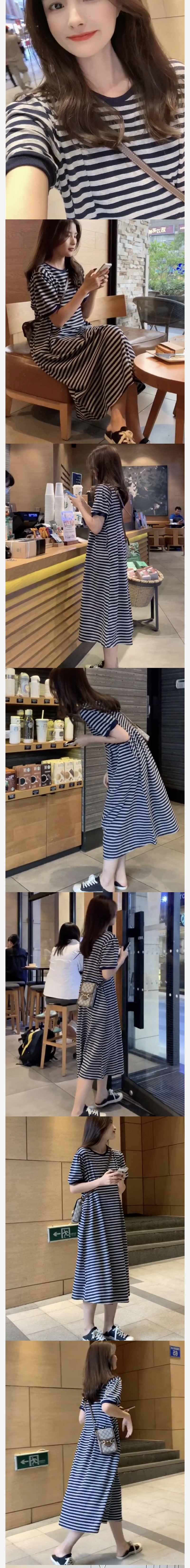 商品詳情 長款 衣長110 胸圍102 肩寬36.5 袖長18 腰圍78 短款 衣長81 胸圍102 肩寬36.5 袖長18 腰圍78 ALORA 通勤橫條紋短袖洋裝 TWD $450 ~ 499 TWD $450 ~ 499