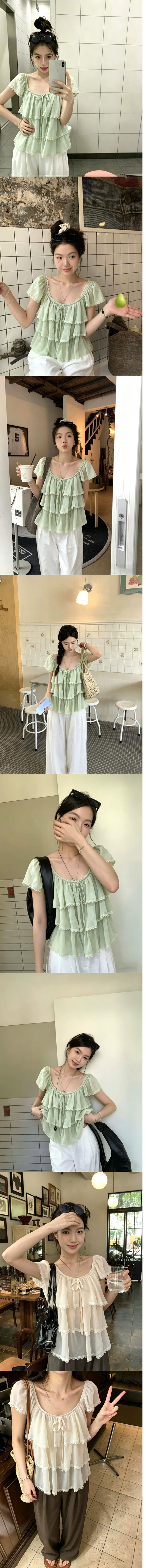 ALORA 蛋糕飛袖雪紡上衣,ALORA