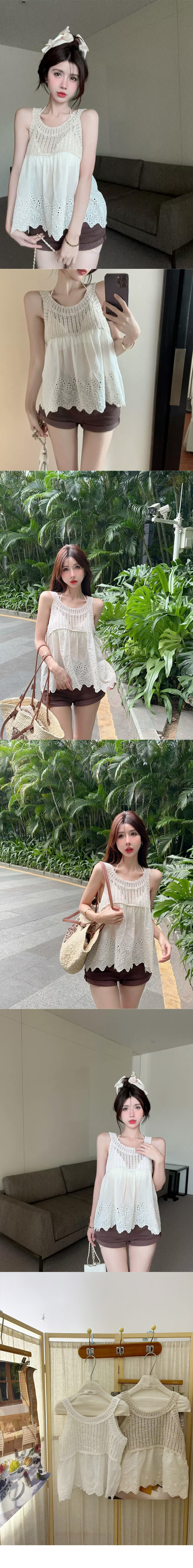 ALORA 編織拼接蕾絲緹花繞頸上衣,ALORA