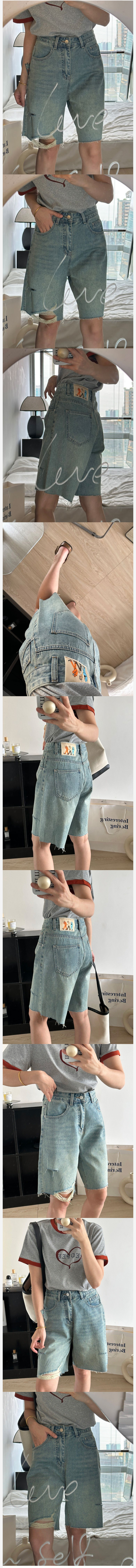 ALORA 褲管刷破破牛仔五分褲,ALORA