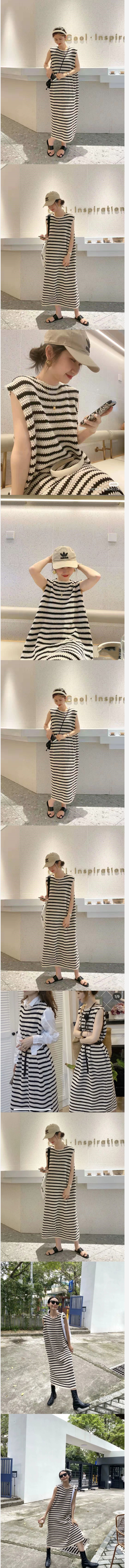 ALORA 簍空感橫條紋背心洋裝