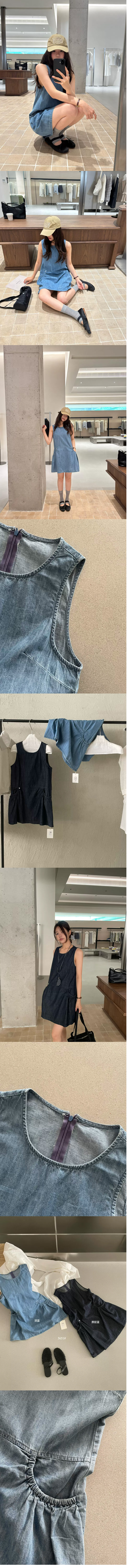 ALORA 插口袋無袖背心牛仔洋裝,ALORA